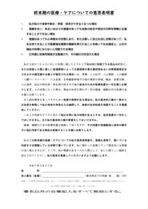 つまり、自分が臨終を迎える際にどういう最期を迎えたいかを事前に表明し、その意思の尊重を依頼する文書。