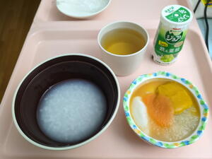 しかし軟食になり摂取カロリーが700Kcalとなり、量も増えたにもかかわらず、ちゃんと給食が「食餌」から「食事」になったことにより完食できるように。まあ例に漏れず700Kcalってどの程度かといえば、「普通盛りの塩ラーメン1杯とお茶碗1杯の白飯」程度なんですが。