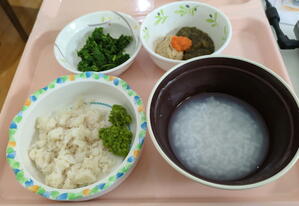 昨日から食事のステージが上がって、軟食(刻み食+全粥)になりました。